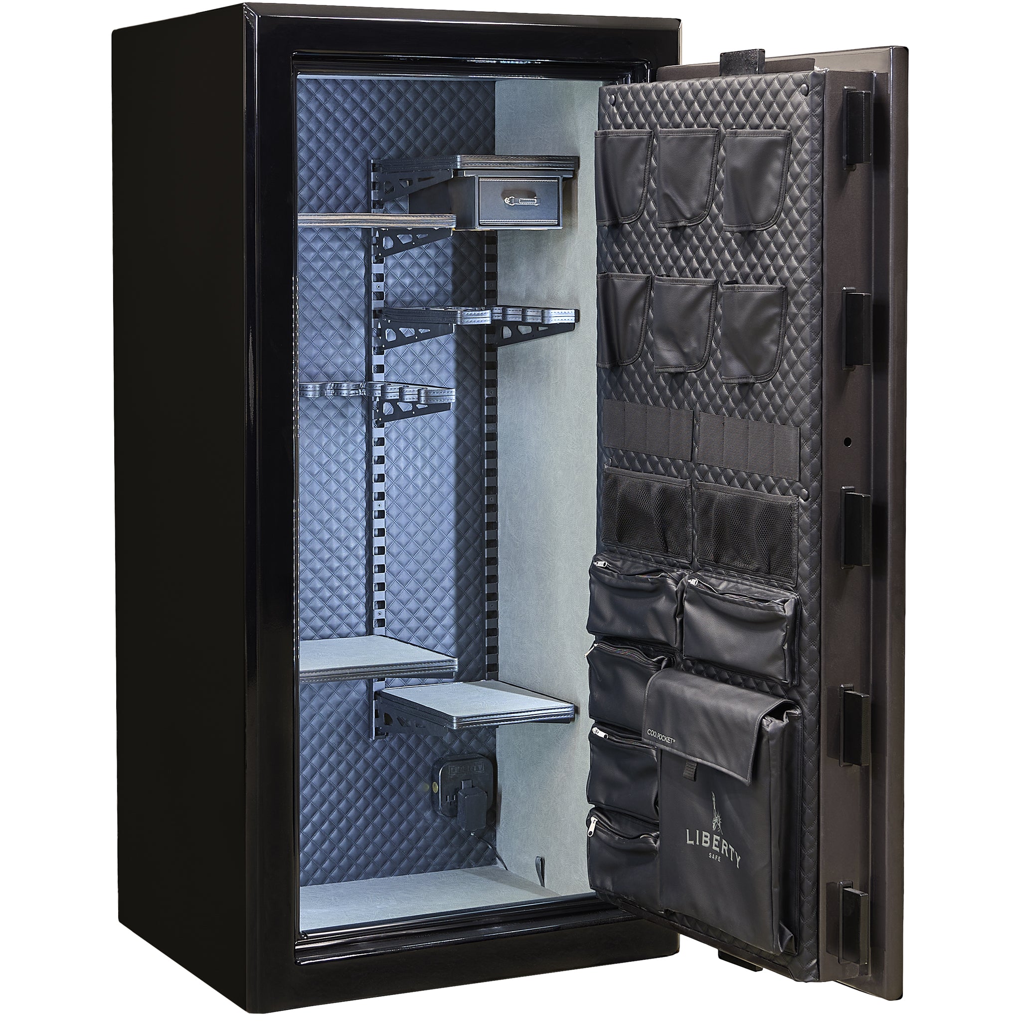 Each safe model retains the same 2.5-hour fire protection and Level 10 (formerly 8) security that define the Presidential Series, but adds thoughtful upgrades that blend performance and style. Inside, the Faux Leather ProFlex Interior with diamond-stitched back panel, 2 or 3-column ProFlex shelving system, Clearview multicolor lighting, and Premium Door Panel with matching diamond stitching create a refined, cohesive interior that’s as functional as it is beautiful.